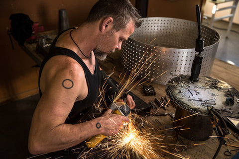 While Scheiferstein has explored a few artistic pursuits, including painting and creating large scale metal home furnishings (think large mirrors, staircases and railings, as well as massive steel planters) in the last few years he’s become more focused on his jewelry collection, which he sells in more than 15 boutiques and shops in Asheville and beyond, as well as at his own studio, pop up shops, special events and through his website.