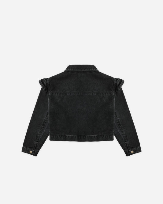 Rylee + Cru Ruffle Denim Jacket, Washed Black