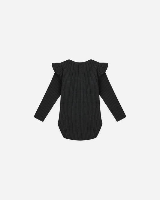 Rylee + Cru Shoulder Ruffle Bodysuit, Black