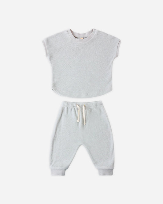 Quincy Mae Waffle Shortie Set, Sage Stripe