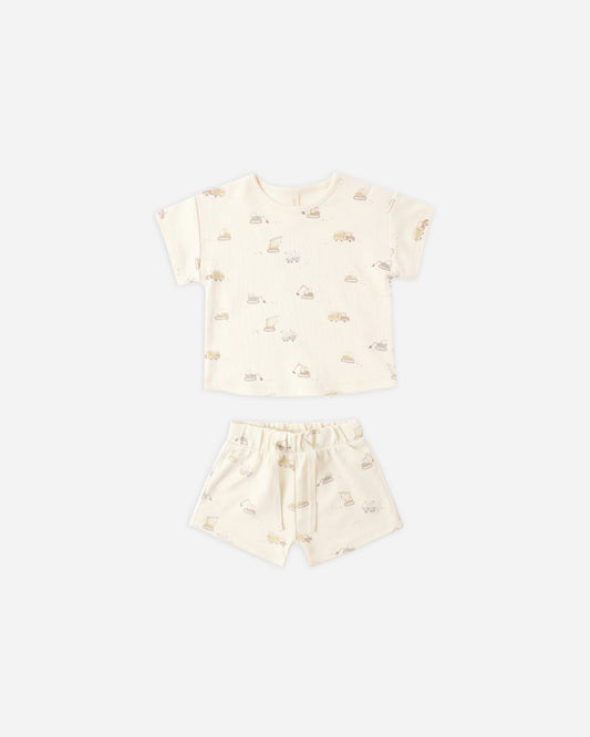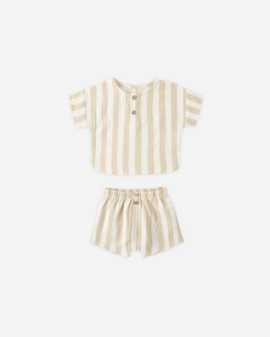 Quincy Mae Woven Boxy Top + Short Set, Summer Stripe