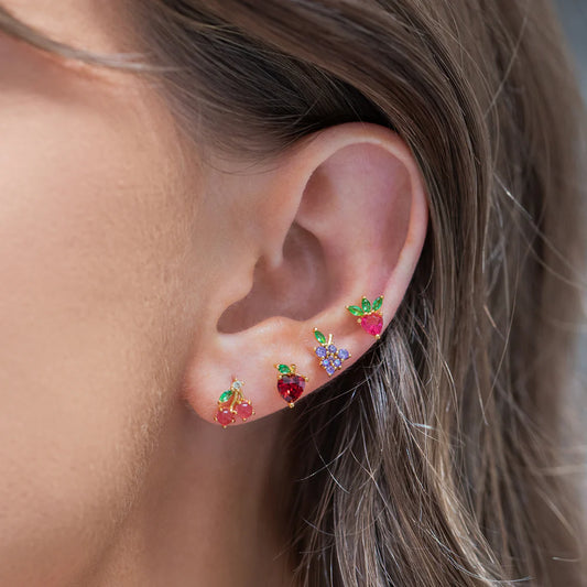Girls Crew Fruit Basket Stud Set, Gold
