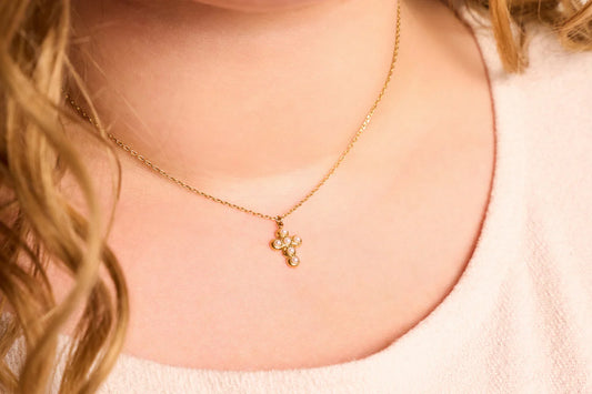 Nikki Smith Pearl Cross Necklace, Gold
