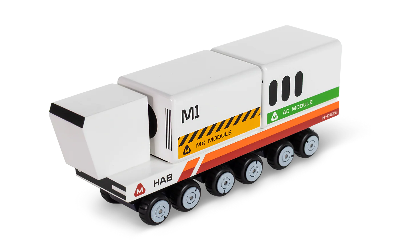 The HAB Transporter is an essential vehicle for the settlers of Mars. Equipped with a suspension base, this vehicle transports many modules for the MARGE crew.