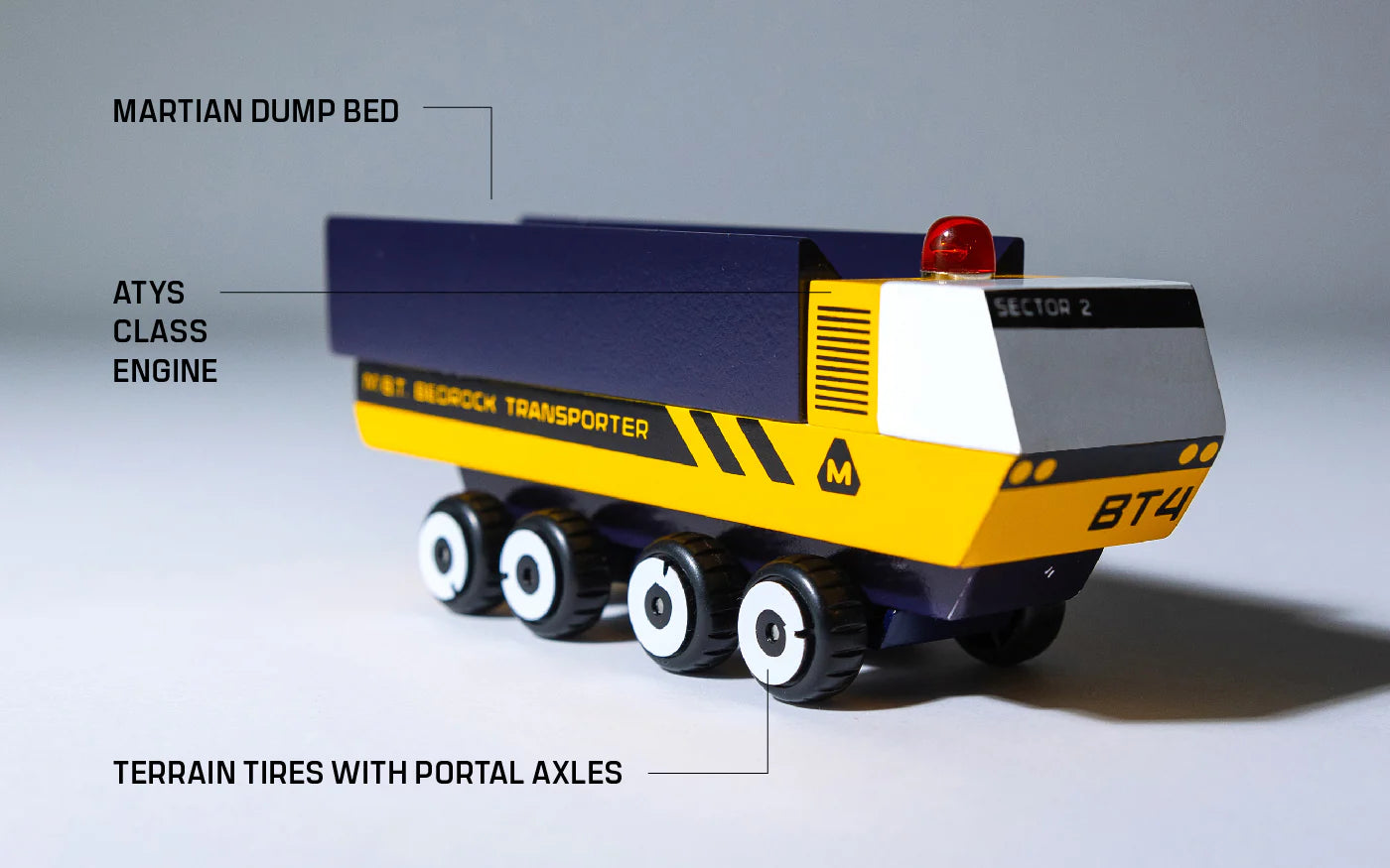 Equipped with a suspension base, the MBT (Mars Bedrock Transporter) is built to haul the red rocks of Mars, like a dump truck!