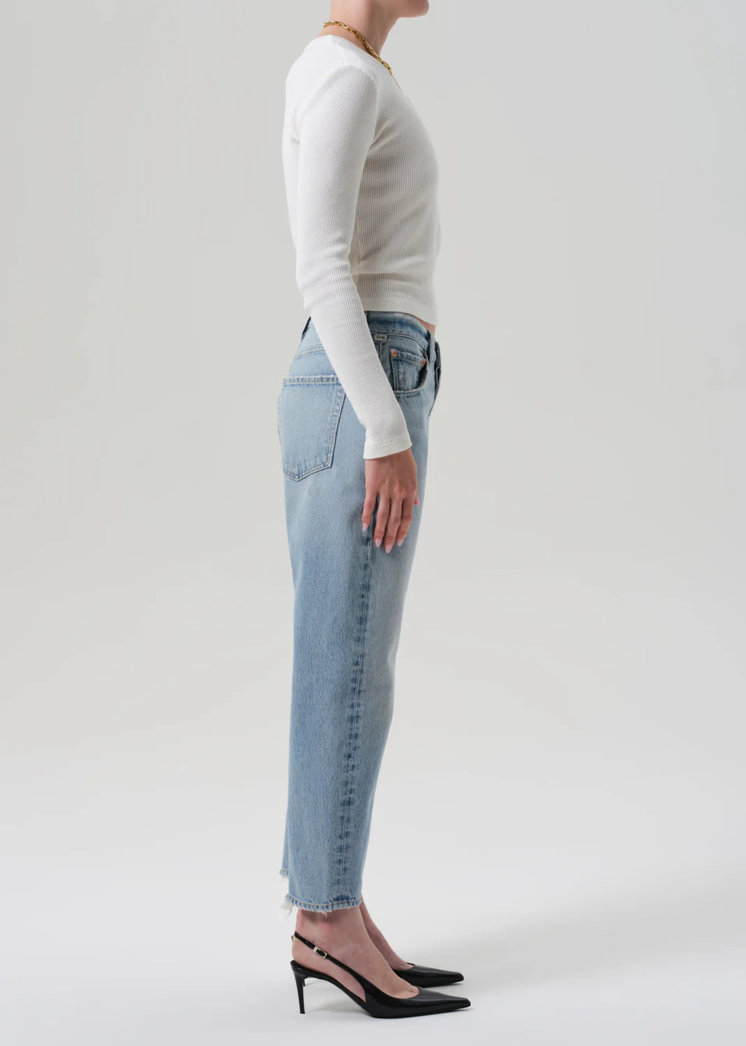 Looks Like: Light indigo denim pant