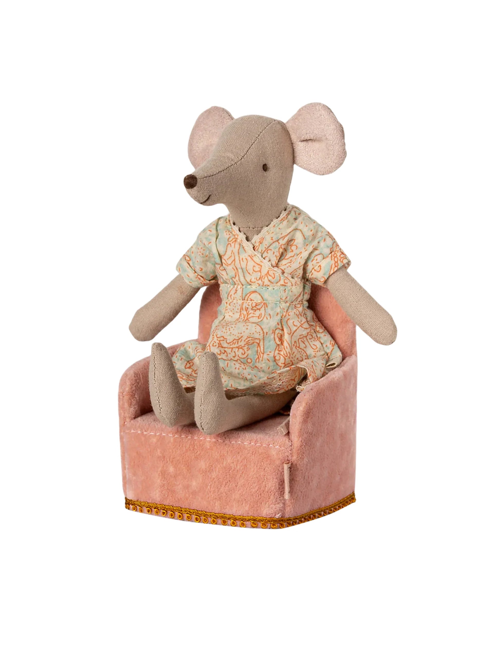 A perfect place for your small Maileg friends to take a rest. It fits nicely into the Mouse hole Farmhouse. The chair is delivered flat packed and is easy to fold and assembly.