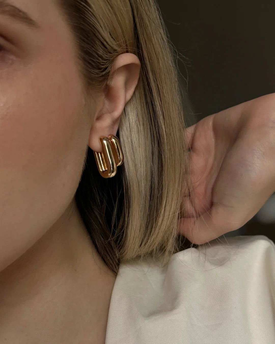 Our Elly Petite Hoops aren't your average hoops. Puffy, elongated, and surprisingly lightweight, they're the perfect balance of bold and comfortable. Available in two sizes and in two tones - shimmering gold or sleek silver, these are the hoops you'll reach for again and again.