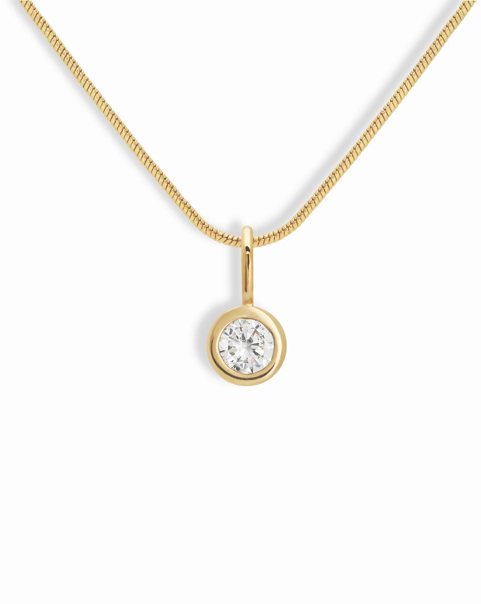 Classic to her core. Delicately strung on a smooth magic chain, a dainty pendant rests sweetly on the décolleté and is designed to wear with any and everything, all the time.