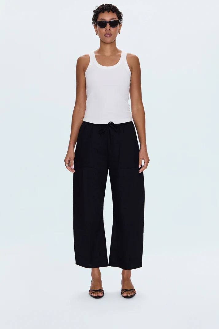 Meet the Theo Pant, our latest resort summer design, impeccably shaped for a superb fit. The gentle bow in the leg and adjustable drawstring waistband detail enhance its effortless appeal, while our soft, lightweight woven fabric ensures all-day comfort. Perfectly suited for sun-drenched days, the Theo Pant will quickly become your preferred choice for travel. From busy itineraries to leisurely escapes, you'll appreciate the versatility and style of this must-have pant in every colorway.