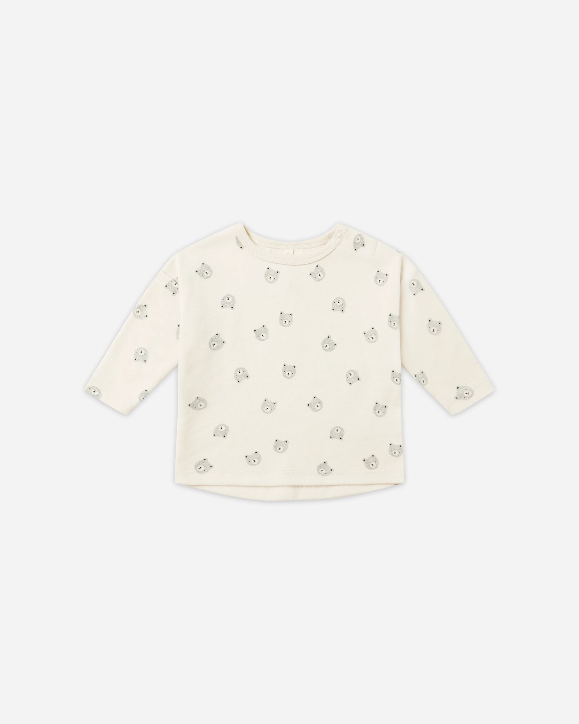 Quincy Mae Long Sleeve Tee + Drawstring Pant, Steel Blue Bears