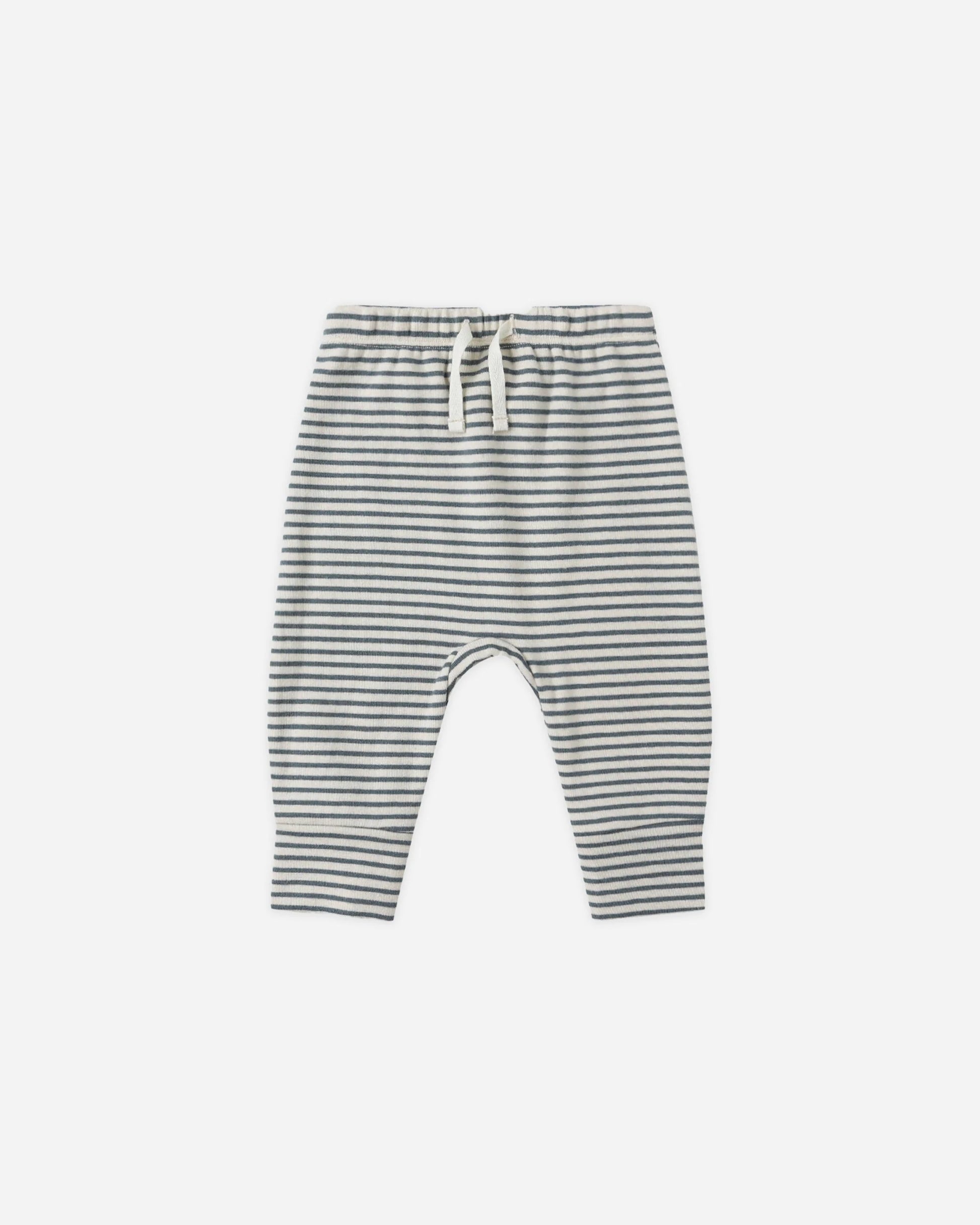 Quincy Mae Long Sleeve Tee + Drawstring Pant, Ocean Micro Stripe