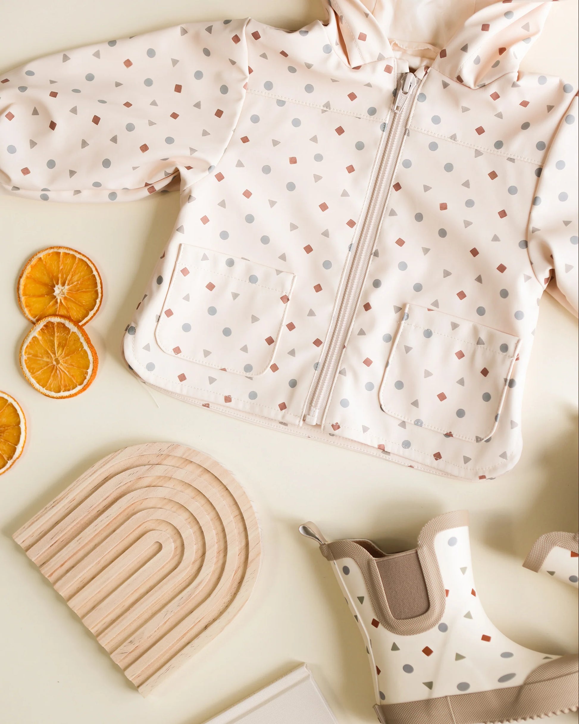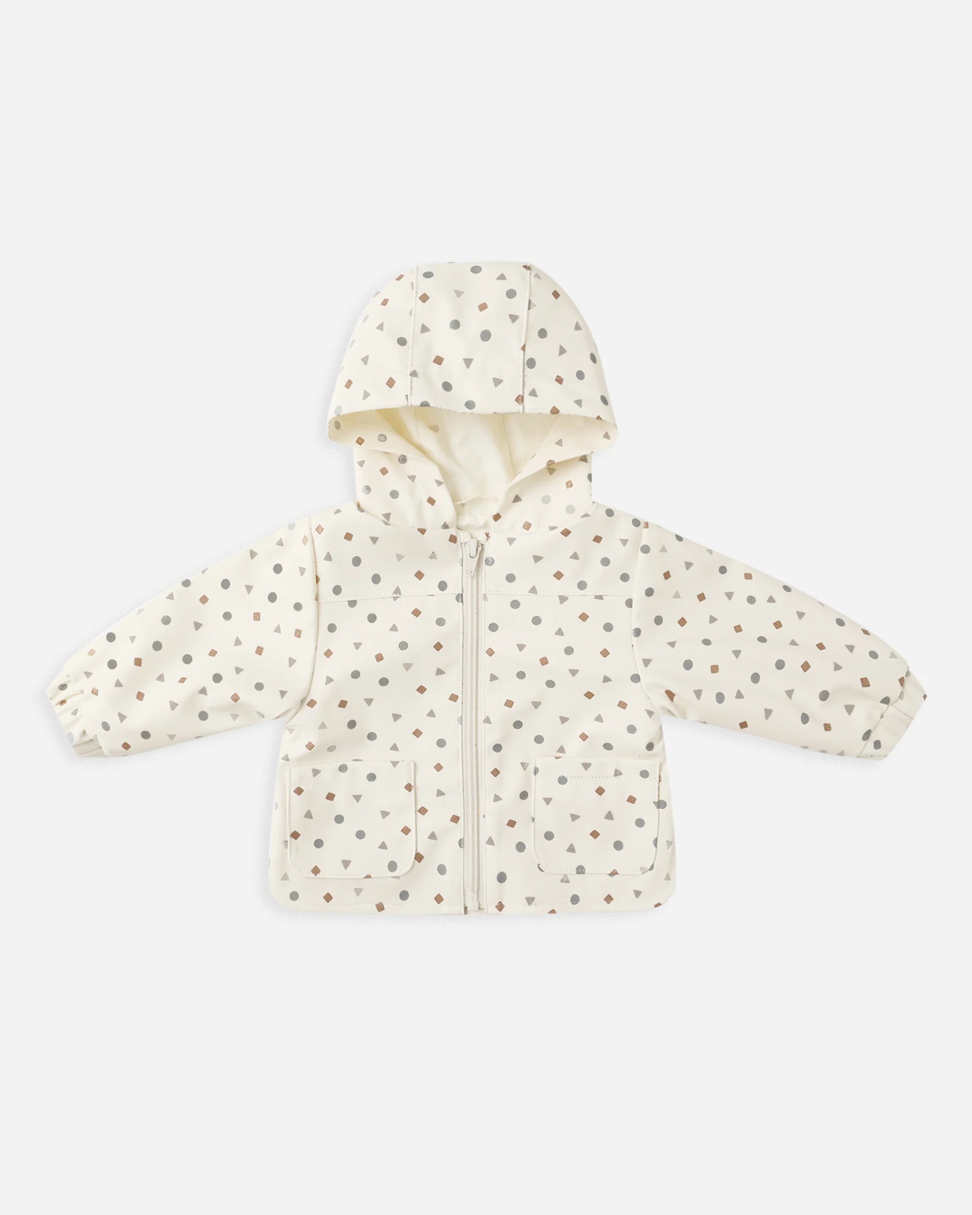 Our Raincoat keeps your little one dry and comfortable with thoughtful details like front slit pockets, an airflow flap across the chest, and gathered elastic cuffs at the wrists.