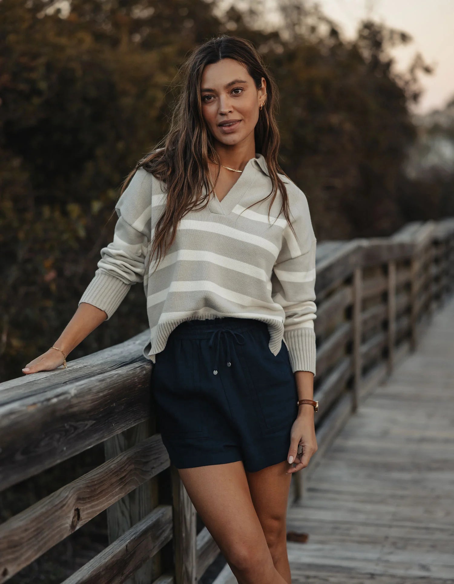 The Normal Brand Women's Leukos Linen-Blend Paperbag Short, Navy