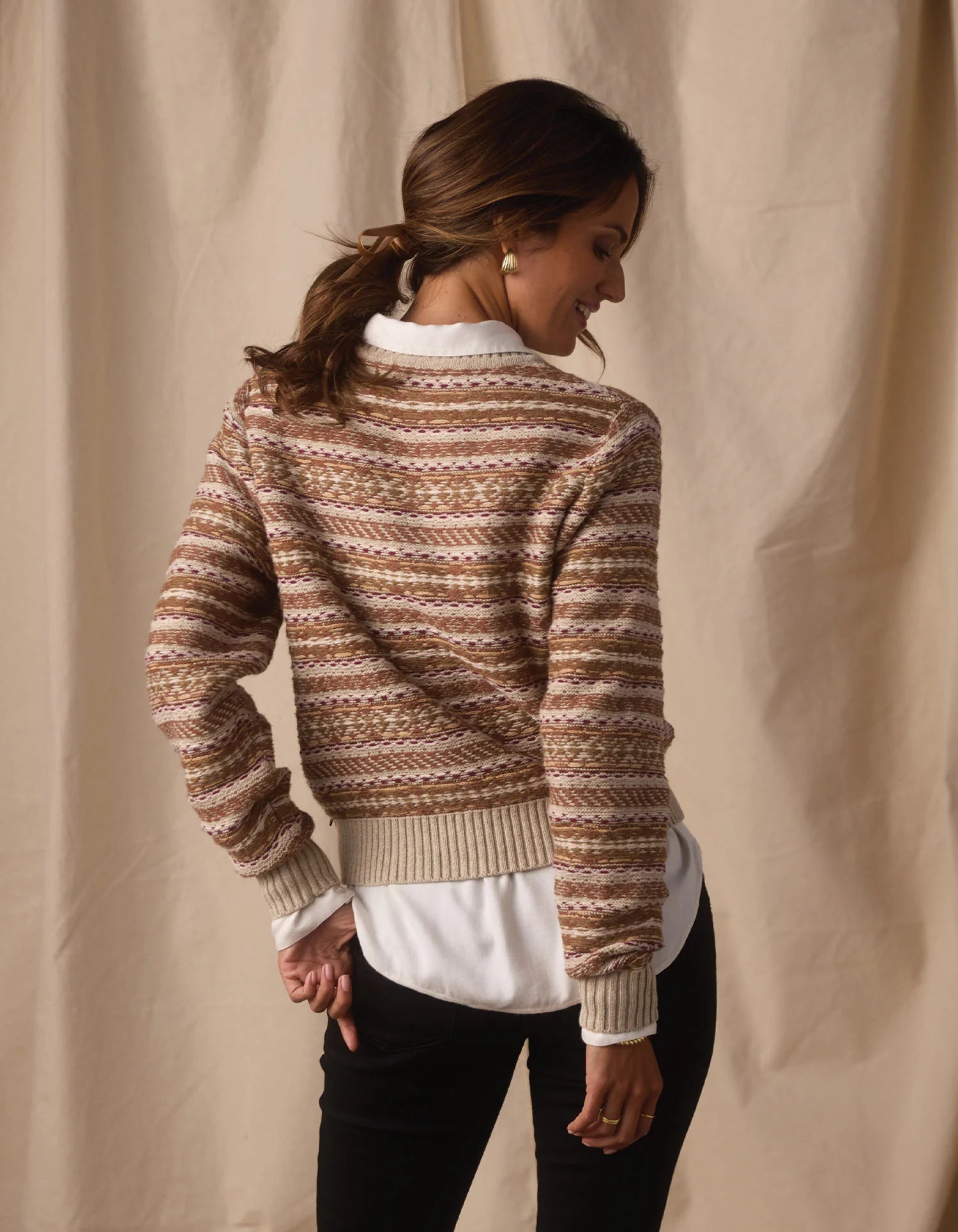 The Normal Brand Women's Reverse Fair Isle Crew, Cream Multi