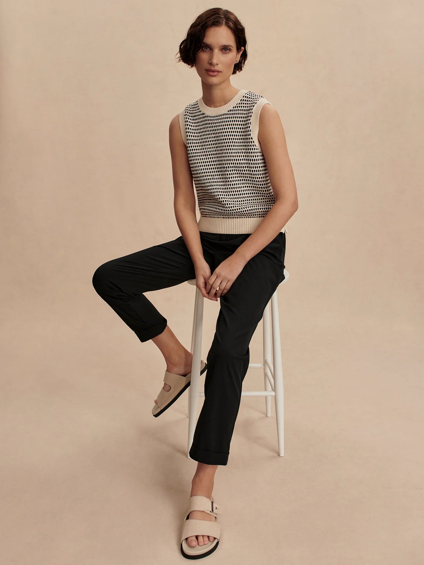 The Alana pants are cut to a slim, tapered fit with an elasticated waistband and turn-up cuffs. Crafted from our Soft Stretch Woven fabric, they offer all-day comfort and a lightweight feel, making them a go-to for any occasion.