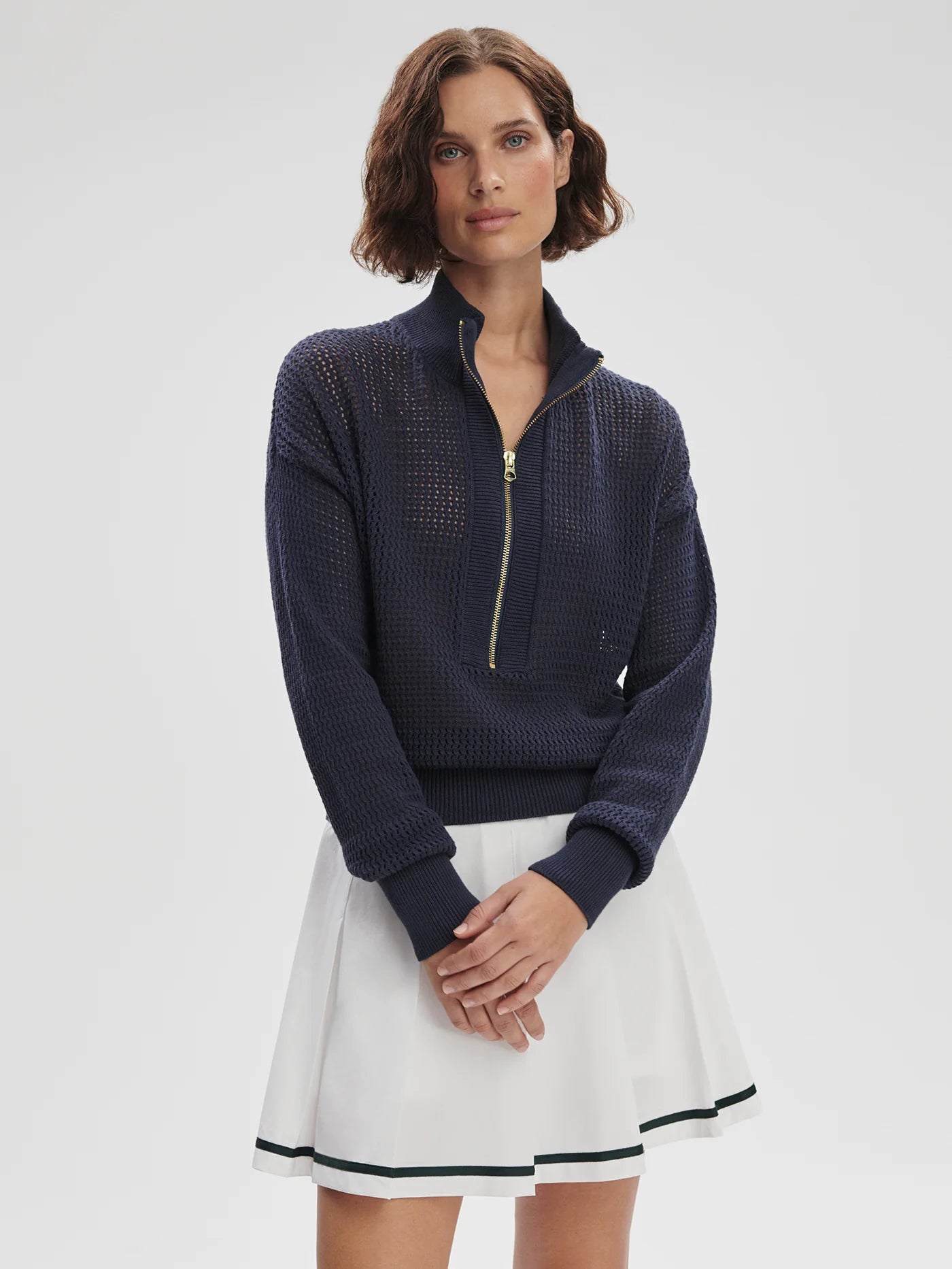 Cut for a standard fit with a high ribbed neck and drop shoulders for a relaxed feel, the Aurora comes in our textured Honeycomb Knit. A lighter layer, it’s ideal for relaxing in or throwing on post-match.