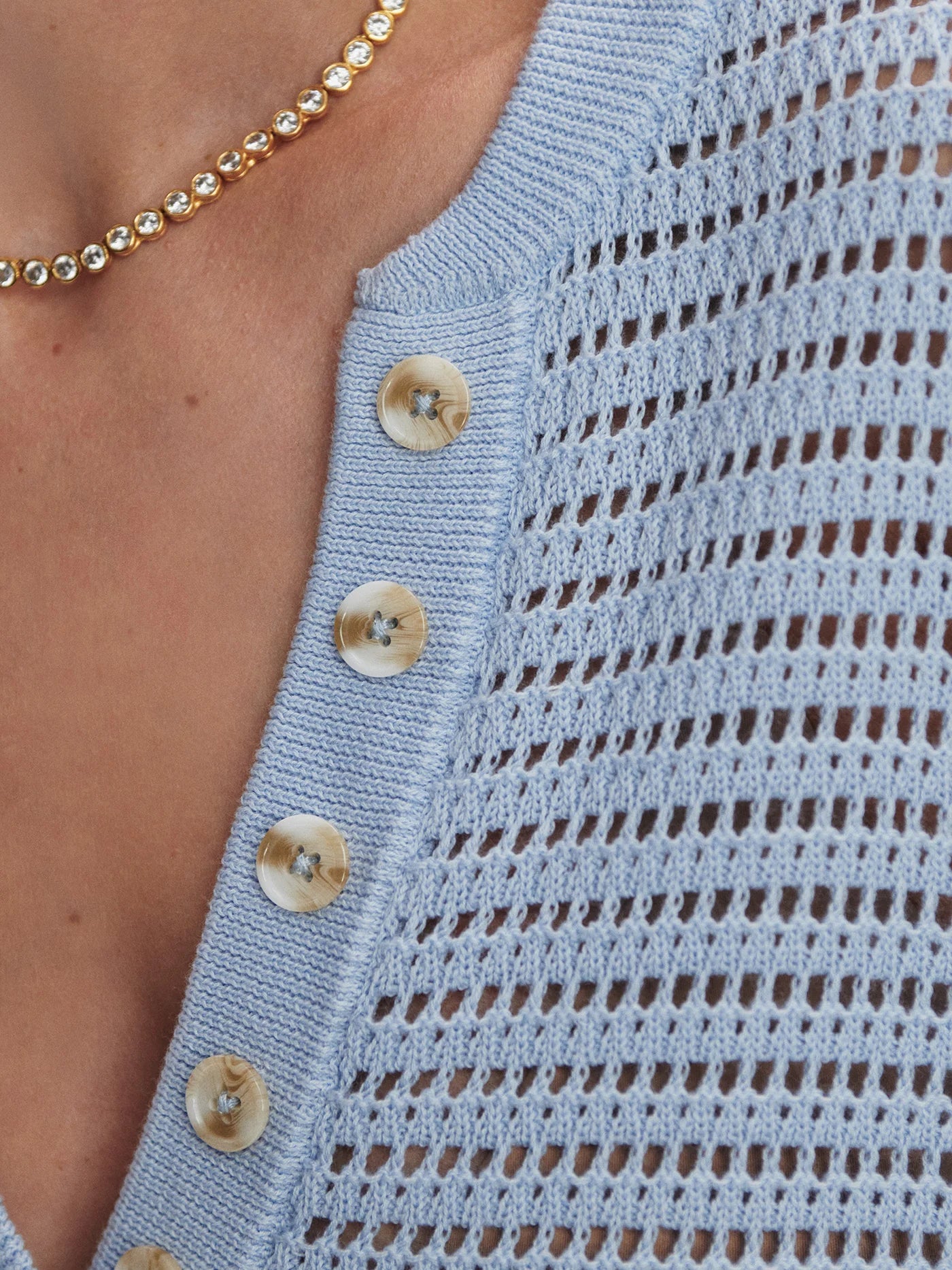 Crafted in our lightweight cotton mesh knit to a boxy, oversized silhouette, this top hangs elegantly off the frame with a deep V-neckline. Featuring short sleeves with dropped shoulders for a more relaxed fit, style with everything from active sets to everyday staples.